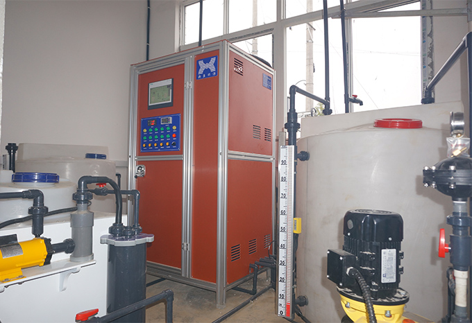 目前,污水厂整体构筑物已经完成,设备基本到场,且顺利安装完成。消毒采用广州市新奥环保设备工程有限公司生产的全自动次氯酸钠发生器,设备运行稳定,安全可靠。