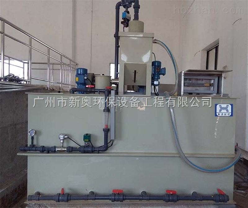 PAM干粉投加机由三腔式箱体、干粉投加系统、溶解系统、熟化系统、储药系统、控制系统、液体投加系统构成。本装置是粉状高分子凝絮剂的自动连续配置及投加系统。干粉絮凝剂从螺旋推进器内进入速溶器内与清水进行预混,被湿润的物料进入配制槽进行搅拌稀释,按要求浓度进行配制;若为液态絮凝剂则由螺杆泵直接投加到配制槽中。配制过程中,进水量在流量计观测下必须相对稳定,从而保证在整个工作过程中,配制溶液浓度不变。具有误差小,调节方便等优点。设备全采用PLC控制,设有手动、自动两种工作方式。